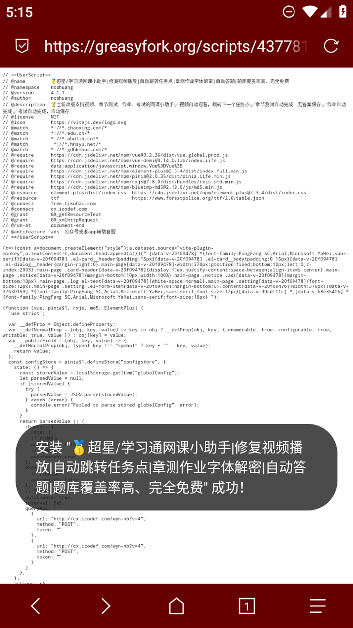 2、打开网址后,可以看到许多功能强大的脚本,包括刷课、网盘资源、视频、音乐等多种脚本,资源丰富,用户可以根据需求进行选择。