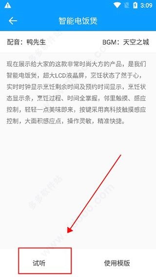 3、点击试听按钮,听一下生成的语音效果。