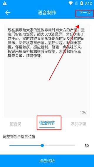 6、你可以调节语速,设置好后点击“下一步”,即可完成操作并使用。