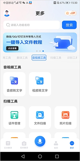 2、支持导入录音文件,借助翻译识别模块将录音内容智能翻译成文本。