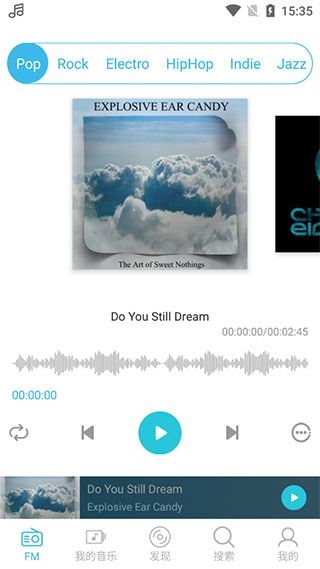 1、下载安装文件并打开,首页是电台界面,您可以切换到不同的音乐类型,点击即可播放;