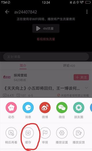 3、点击后会弹出多个选项,选择“缓存”即可;