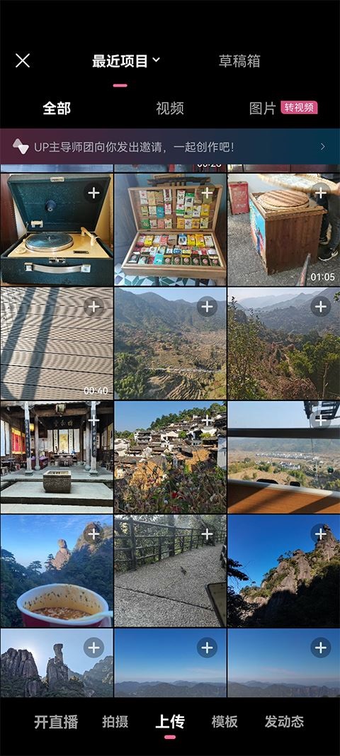 2、投稿可以选择视频或图片方式,同时也可以将多张图片合成一个视频。
