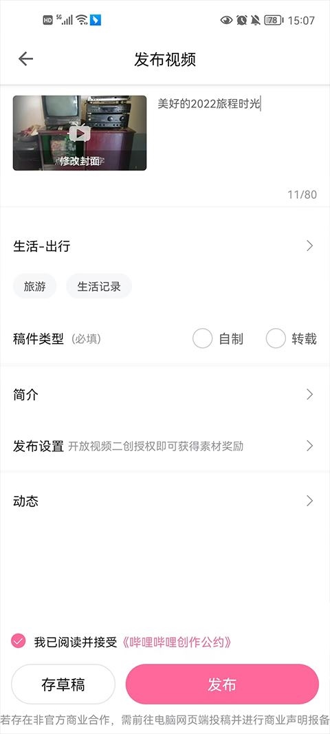 4、填写标题、标签、类型和简介后,即可发布您的作品。