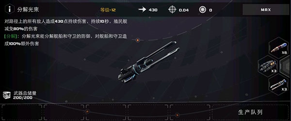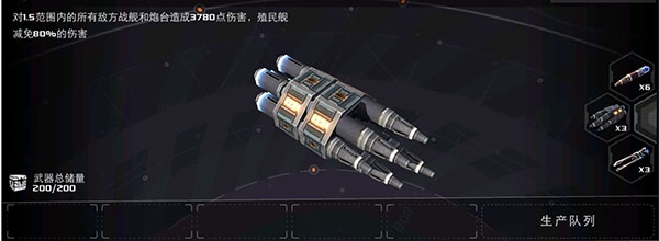 直线伤害,能对舰船和守卫造成200%的伤害。使用时可以多次穿透敌舰,非常适合对付血量较少且带有能量盾的战舰。